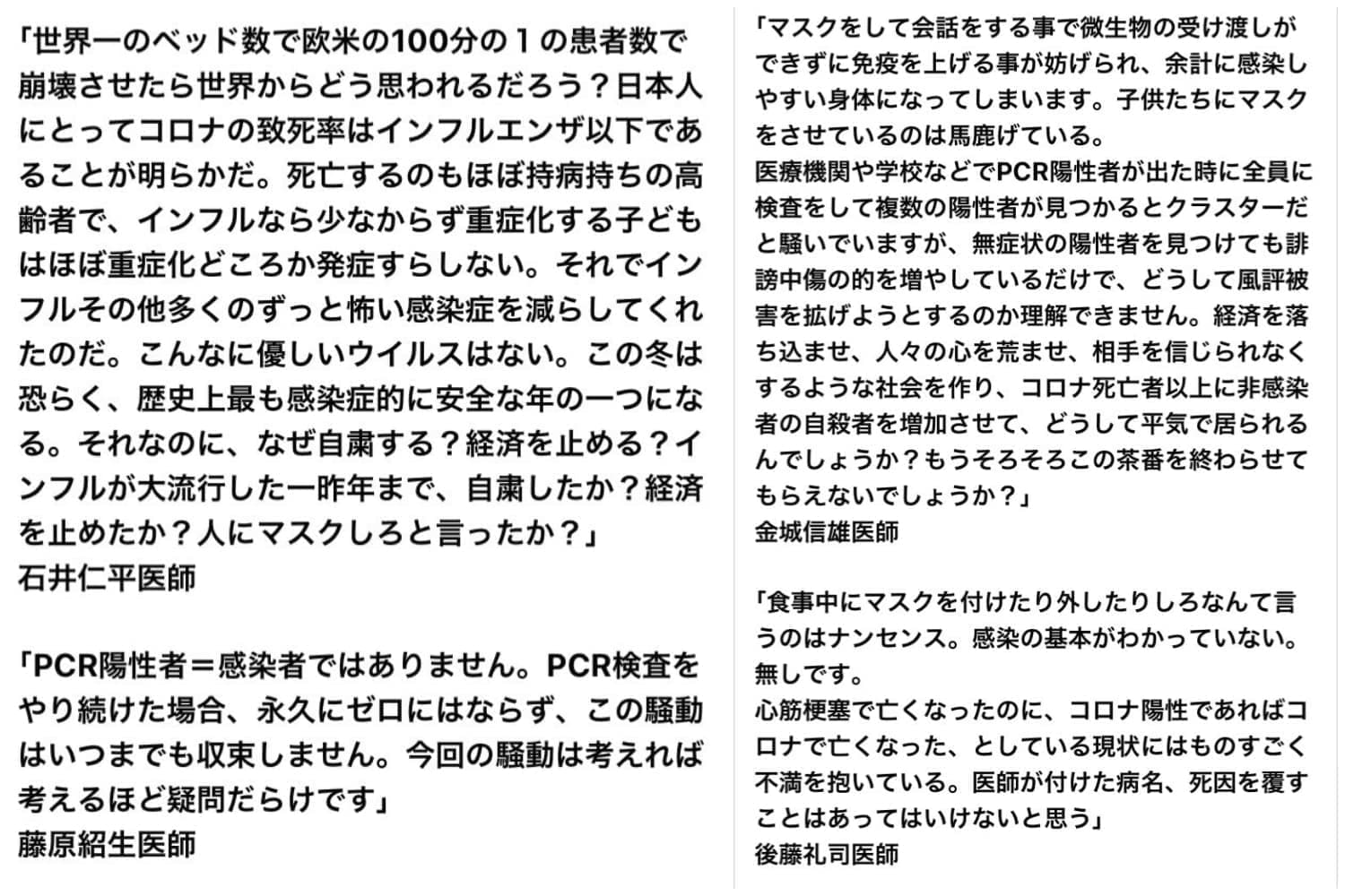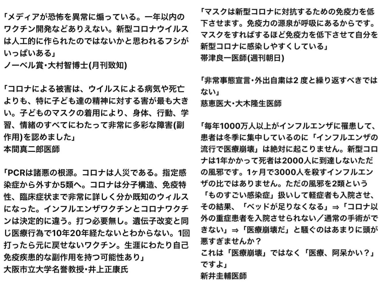 今回、「WERISE提言」として、新型コロナ感染症予防対策についての共同宣言を7人の医師達が声明を出されているのを知りました。武田邦彦先生、吉野敏明先生、大橋眞先生、矢作直樹先生、藤井聡先生、内海聡先生、井上正康先生がたです。