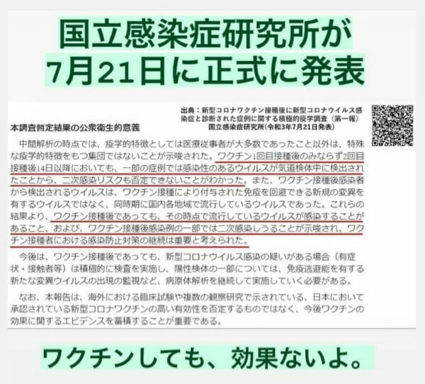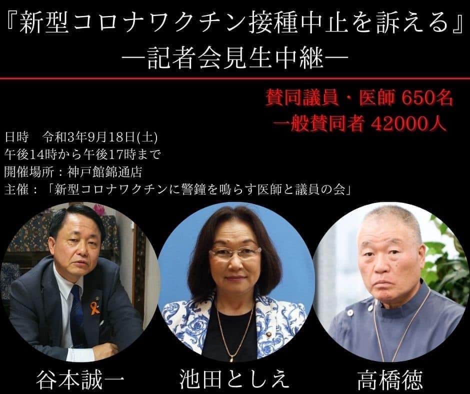 また、同日なのだが、「新型コロナワクチン接種中止を訴える」の記者会見も予定されている。台風も接近中なので、デモが中止、あるいはデモには参加する予定ない方は、是非とも記者会見をご覧頂きたい。