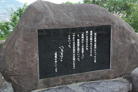展望台の右下に坂本龍馬の銅像が〜石碑も横にありました〜ふふ