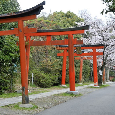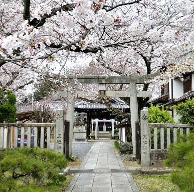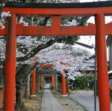 一の鳥居から境内まで参道を彩る桜並木になります。