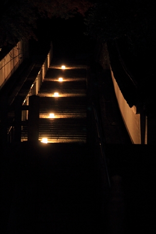 更に方丈庭園の受付へと足を進めると~漆黒の闇に浮かぶライトが心を掻き立てます。