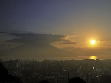 翌朝は写真ブログの元旦の写真にもしましたが、桜島と錦江湾が