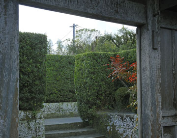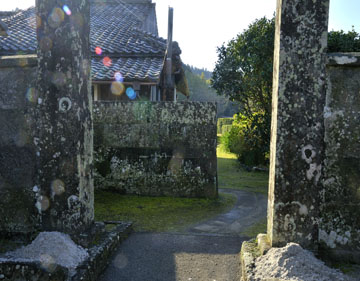 門をくぐると切石の目隠しにつき当たりますよ。