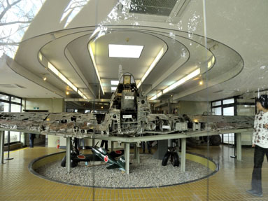 写真左は30年前に海底から引き揚げられた実際の零戦です。