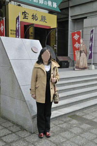 このお店の前にダックス人形が可愛いお着物を着てたんですよ。
