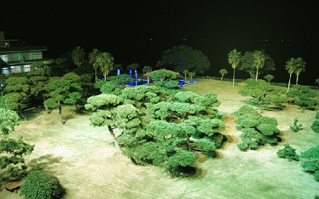 5万坪の敷地には日本庭園が広がり、海と空の青あり、そして