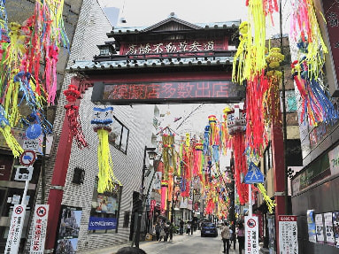 帰り道は七夕飾りで華やかな参道を通って駅に出ました。