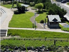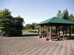 3わんも暑くて大変でした。でも高台の東屋まで行くことにしたので