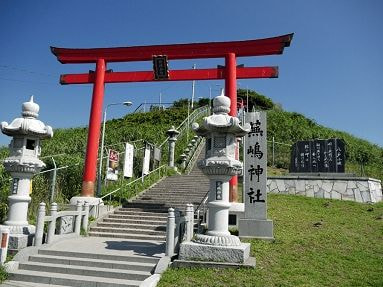 駐車場から歩いて数分の所に蕪島神社があります。