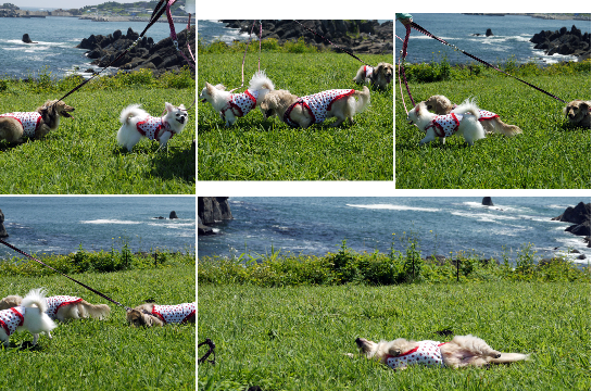 3わんも海をバックに撮影したかったんだけど、なかなかどうして・・・(;^_^A