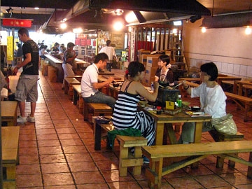 センター内で買った魚介類を好き勝手広場の七厘村という所で炭火の七厘で焼いて食べることもできますよ。