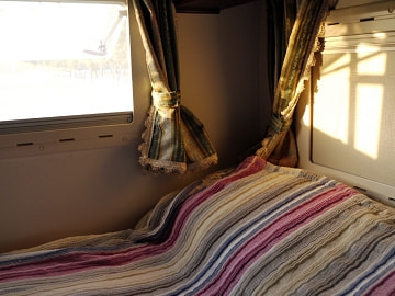 後ろのベッドにも良い感じで日が差し込み〜キャンカーならではの醍醐味を満喫です!
