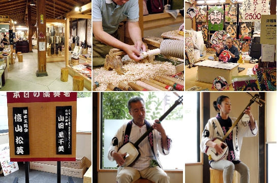 津軽塗・こぎん刺・こけし・こま・津軽焼・津軽錦絵(ねぷた絵・凧)の制作風景が見学できます。