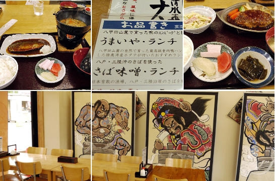 そして、右写真の正面の建物はお食事処・大かまど飯「津軽旨米屋」です。