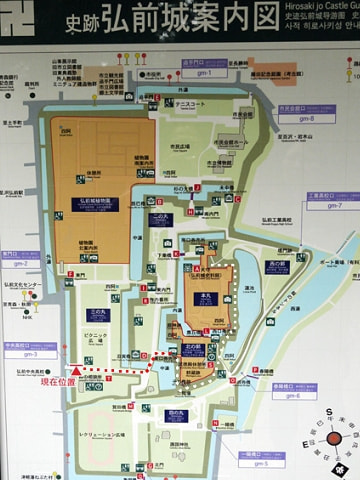 そして、案内図の赤・白点線上に見学して行きました。