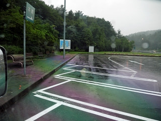更に給油のために立ち寄った花輪SAでは土砂降りの雨。。