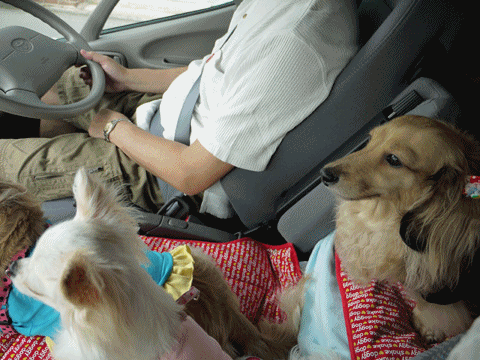 この時ばかりはおやつには目もくれないで、こうやってフロント席でいつまでもいつまでも