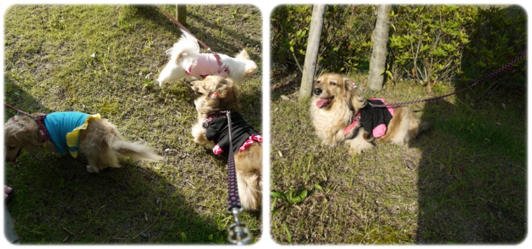 30分ほどで着いたので、少し日陰になってる芝生にわんこ達も出してあげましたよ。