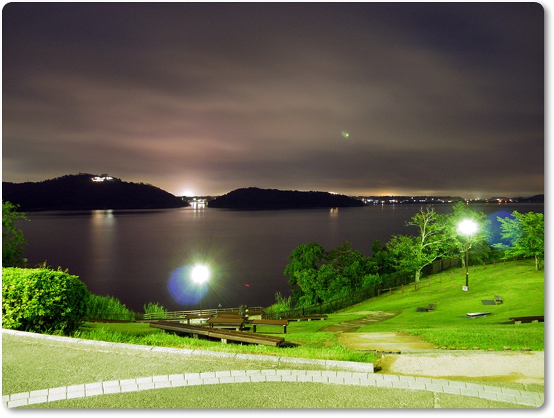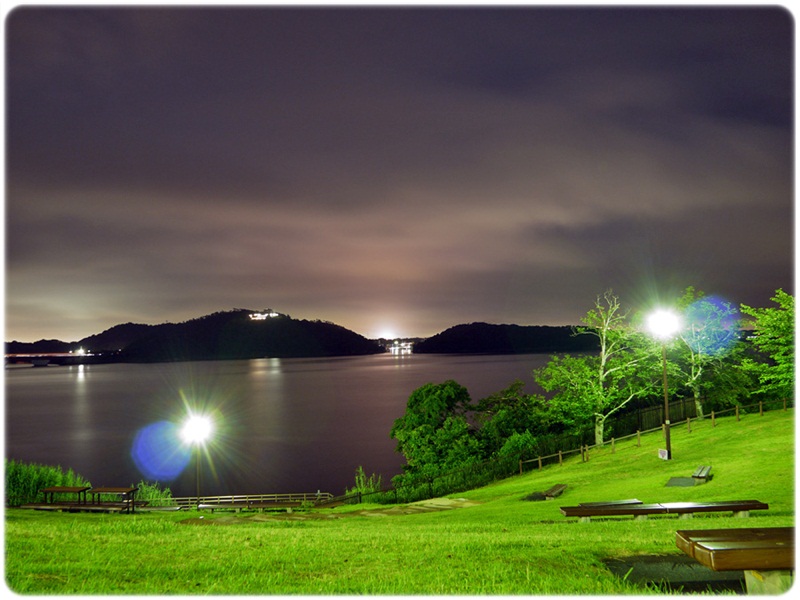 これだけの夜景はなかなか撮れないですよね。芝生の緑がくっきりと~すごっ!!