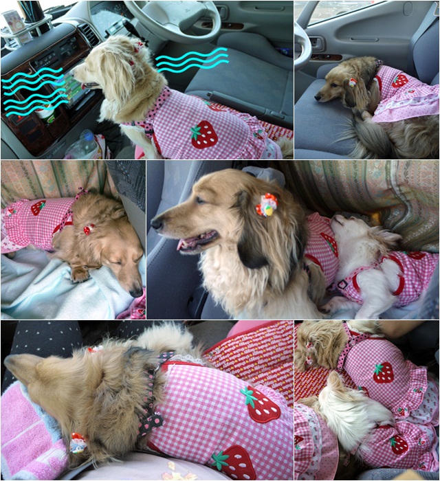 ご覧のように、涼んでいますよ。 フロント席内でのわんこ達~ふふ