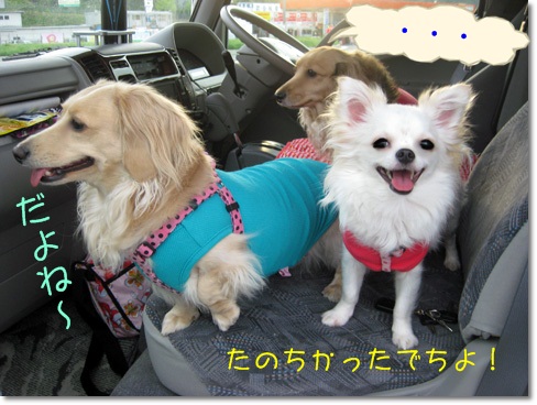 ソフトクリームをもらって満足そうなわんこ達・・・
