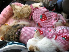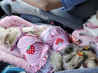 ふと座席に目をやると~2泊3日の旅を満喫した3わんこが幸せそうにスヤスヤ寝ていました~♪