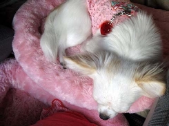 キャンカーに戻るとすぐに洋服を脱がして、お水をあげると~3ワン共グッタリ~