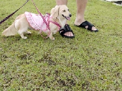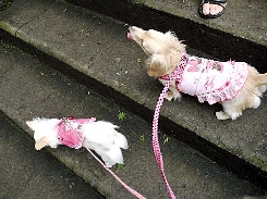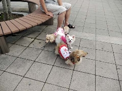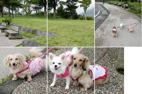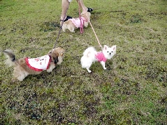 昨日の雨で水溜まりなどもあり、かなり歩いたのでわん達の洋服はドロドロだし、私達は汗だく・・・(-_-;)