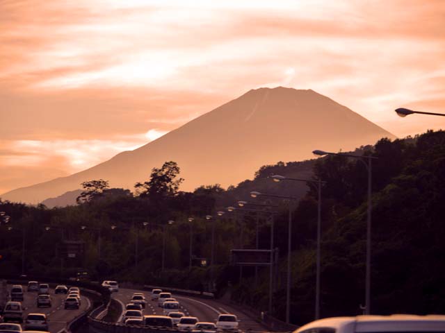 富士川S.Aに向かう19時過ぎ頃にはこんな夕焼けが・・・